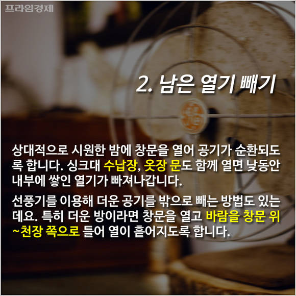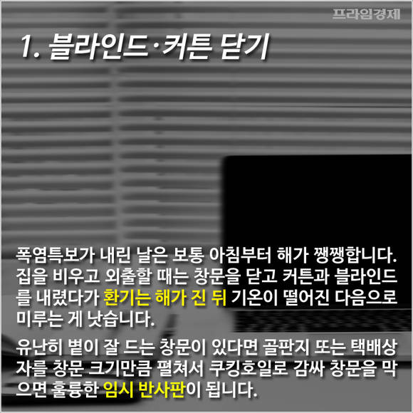 당장 찬물 샤워로 몸을 식히고 시원한 음료수에 더위를 잊고 싶지만 집안이 찜통이라면 아무 소용없습니다.