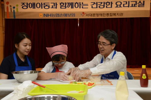 이날 농협손해보험 이윤배 대표이사와 헤아림 봉사단원 20여명은 발달 장애아동 20여명과 밥 케이크 등 간단한 음식을 만들었다. 또 제철 농산물을 활용한 식문화를 이해하고 음식을 통해 서로 소통하는 시간도 가졌다.