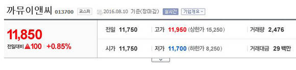 [프라임경제] 코스피 상장사인 까뮤이앤씨(013700)가 입사 열흘 남짓 된 신입사원에 대한 무차별 폭행과 은폐 논란에도 불구하고 10일 유가증권시장에서 1%에 가까운 주가 상승률을 보였다.