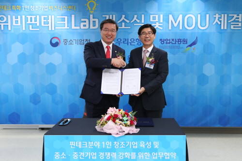 우리은행은 이날 중소기업청과 MOU도 체결하며, 핀테크 분야 유망 1인 창조기업의 발굴과 육성, 중소·중견기업에 대한 금융비용 우대 및 컨설팅 지원에 대해 공동으로 협력할 예정이다.