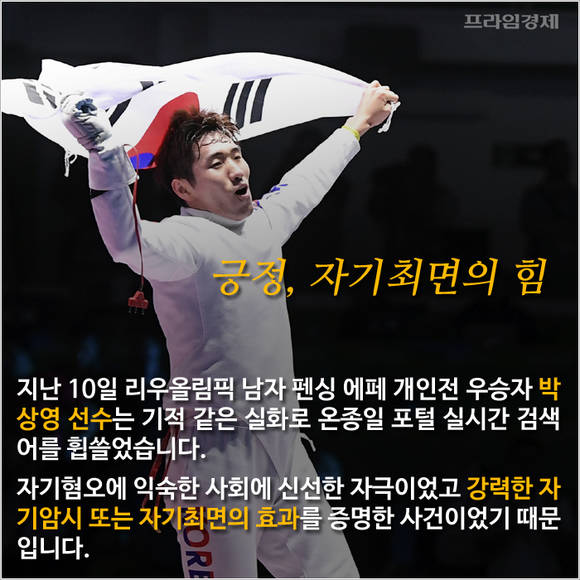 [프라임경제] "할 수 있다." 지난 10일 리우올림픽 남자 펜싱 에페 개인전 금메달을 거머쥔 박상영 선수에게 벌어진 기적 같은 실화는 온종일 포털 실시간 검색어를 휩쓸며 화제였습니다.