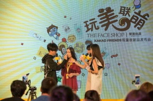 이에 더페이스샵은 지난 12일 중국 베이징 W호텔에서 중국 유명 뷰티블로거인 '왕홍' 등 100여명을 초대해 더페이스샵 X 카카오프렌즈 콜라보레이션 론칭 행사를 열었다.