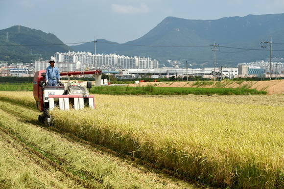 김해시 오늘 첫 벼수확