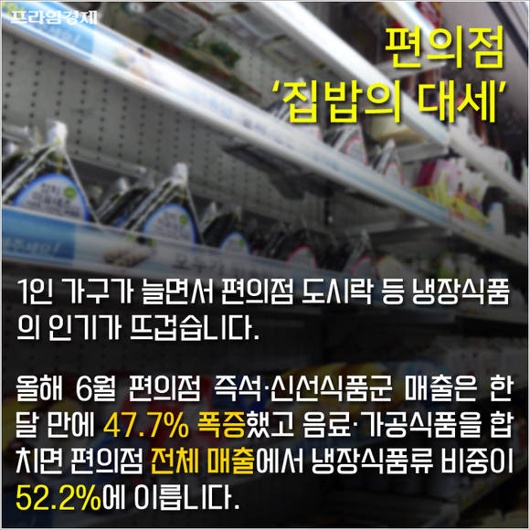 산업통상자원부 등에 따르면 올해 6월 기준 편의점 즉석·신선식품군 매출은 전월대비 47.7%나 폭증했고 음료·가공식품까지 합치면 편의점 전체 매출에서 냉장식품류가 차지하는 비중은 52.2%에 이릅니다.
