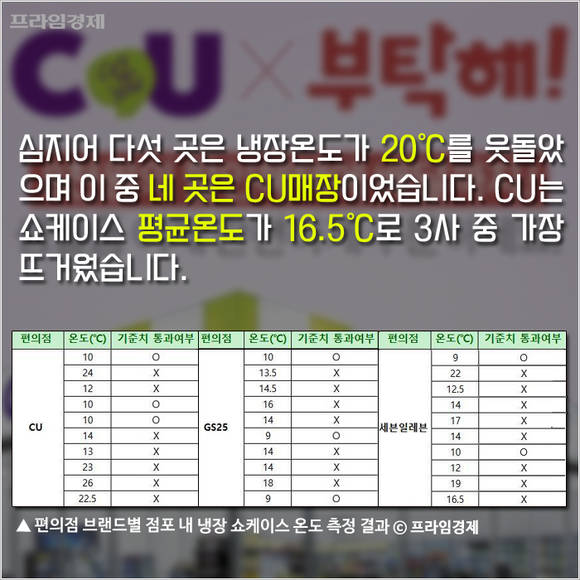 심한 경우 20℃가 넘는 점포도 다섯 곳이나 됐고 이 중 네 곳은 CU 매장이었습니다. CU뿐 아니라 전체 조사대상의 80% 가까운 점포가 규정을 어겼고 위생상태에도 문제가 심각했습니다.