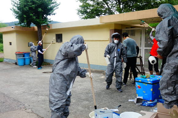 이날 신입사원들은 무더위 속에서도 출입문, 에어컨 보수와 잡초 제거에 구슬땀을 흘렸으며, 재능기부를 통해 본부직원으로서 사회적 책임의식을 함양하는 계기가 됐다.