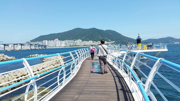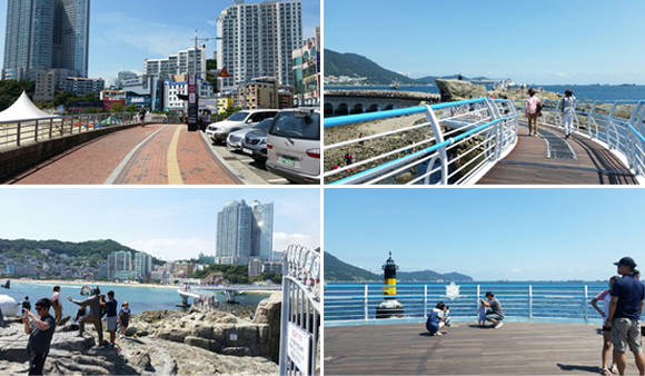 산책로에는 외국인 관광객과 부산주민, 타지에서 온 관광객들이 많았으며 많은 사람들이 난간에 기대어 사진을 찍으며 휴가를 보내고 있었다. 산책로 밑 그늘에서는 더위를 식히거나 물놀이를 하는 사람들이 있었다.