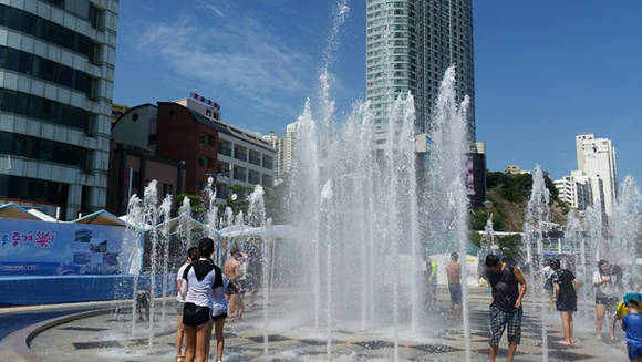 바닷가를 벗어나 인도를 향해 걷다보면 음악분수를 만나게 된다. 음악분수 공연 시간은 시기마다 다른데 휴가철인 7·8월은 오후 8시30과 오후 9시30분에 있으며 낮 시간에 간다면 분수에 들어가 물놀이를 즐길 수 있다.