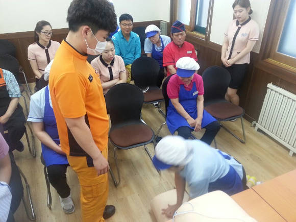 [프라임경제] 백양사 휴게소(소장 이백섭)가 현장에서 직원들의 건강과 고객들의 유사시 발생할 수 있는 심정지 환자들을 위해 심폐소생술 등 응급처치 훈련을 17일 실시했다.