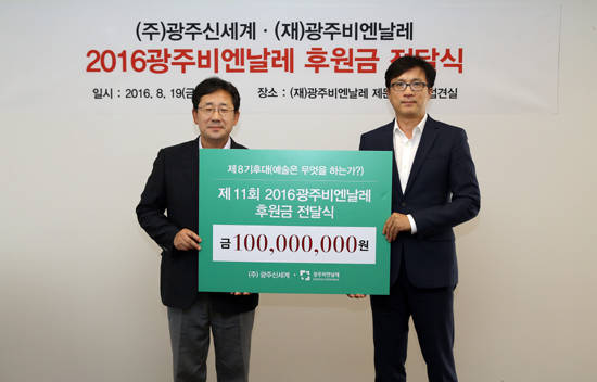 이번 전달식에서 광주신세계는 '제 8기후대(예술은 무엇을 하는가)'를 주제로 국내외 37개국 120여명의 작가가 참여해 펼쳐지는 광주비엔날레의 성공적 추진을 위해 후원금 1억원을 기탁했다.