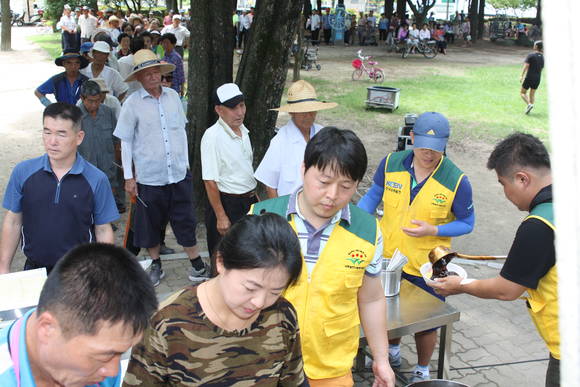 이날 봉사활동은 지난 7월에 이어 두 번째로, 매달 셋째 주 일요일이면 송림공원을 찾아 지역 어르신들의 무료급식 배급과 건강상태 체크를 지속적으로 이어 가고 있다.
