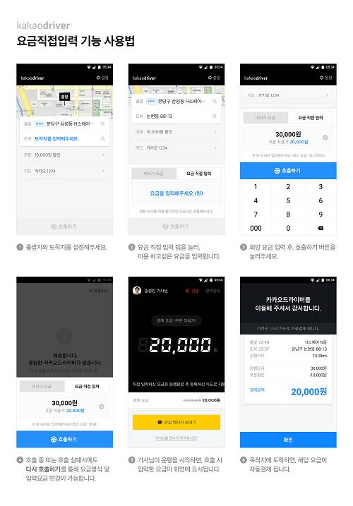 기사회원이 호출을 수락한다면 운행 완료후 이용자가 입력했던 요금이 카드로 자동 결제된다. 해당 서비스를 이용하려면 카카오드라이버 앱을 업데이트해야 한다.