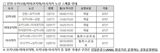 아시아나항공 관계자는 "오키나와섬은 6~7월 해당 노선의 평균 탑승률이 90%에 육박할 만큼 휴가철 대표적 휴양지"라고 말했다.