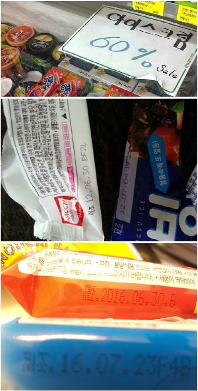 지난 2009년 1월부터 아이스크림 포장지에 아이스크림을 만든 날짜만 적을 뿐입니다. 그래서 만든 지 오래된 아이스크림도 마트에서 팔리고 있는 것이죠.