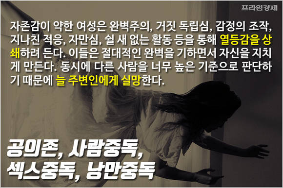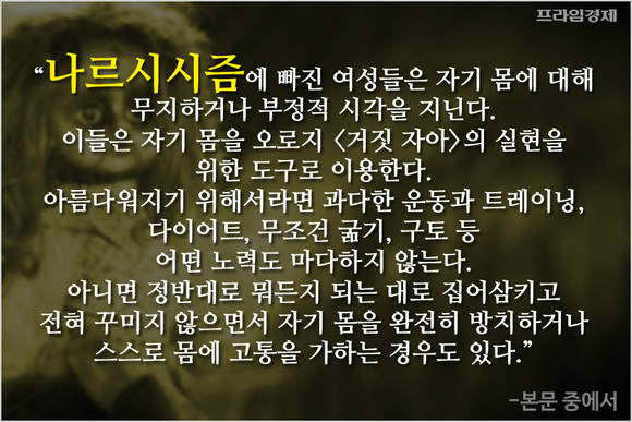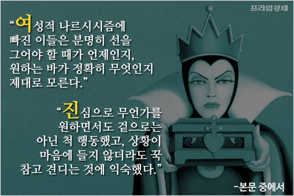 작가는 열등감의 다른 표현인 나르시시즘(자기애)을 여성에 특화해 진단하고 극복방법을 제안하는데요. 날씬한 몸매와 예쁜 얼굴, 높은 능력치 등에 강박을 지닌 여성들의 심리를 실제 사례를 바탕으로 딱딱하지 않게 다루고 있습니다.
