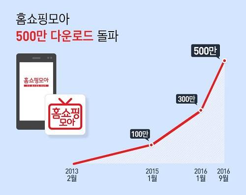 2013년 2월 출시한 홈쇼핑모아는 GS SHOP 등 국내 주요 홈쇼핑 채널을 한곳에 모은 모바일 홈쇼핑 포털 앱으로 서비스 오픈 약 2년만인 지난해 1월 첫 100만 다운로드를 달성했다. 1년 뒤인 올해 초 300만을 돌파했고 이번 500만건 달성까지는 8개월이 걸렸다.