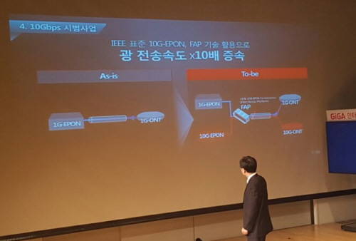 KT는 1Gbps 속도 인터넷을 전 국민이 향유하는 '기가인터넷 2.0 시대'를 선언하고, 여기에 내년부터는 '10기가인터넷'을 선보이겠다고 선언했다.