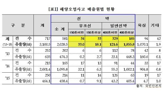 국회 농림축산식품해양수산위원회 소속 박완주 더불어민주당 의원이 국민안전처와 해양환경관리공단으로 제출받은 자료를 보면, 해양오염방지관리인 교육대상이 아닌 150톤 미만 유조선과 400톤 미만의 일반선박에서 해양오염사고가 더 많이 발생했다.