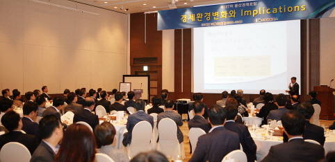 강사로 나선 김대기 한국개발연구원(KDI) 국제정책대학원 초빙교수(전 청와대 정책실장)는 '경제환경 변화와 Implications'라는 주제로 강연했다.