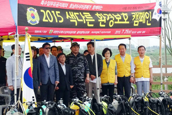 대한민국특수임무유공자회 광주광역시지부와 특임산업개발이 공동 주관해 전개되는 이날 캠페인은 특수임무유공자회는 잠수부 30여명을 수중보 상류에 투입할 예정이다.