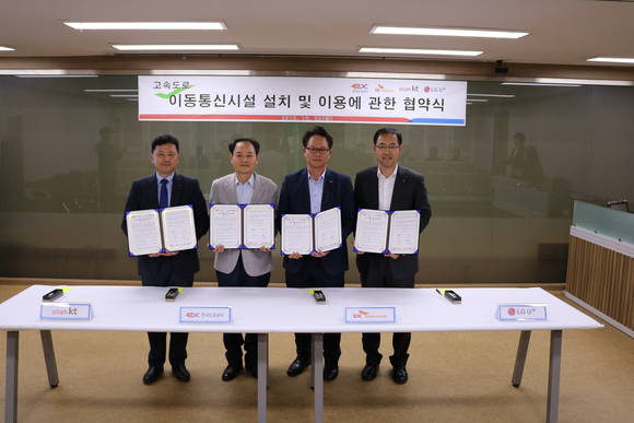 한국도로공사(사장 김학송)는 28일 이동통신 3사(SK텔레콤, kt, LGU+)와 '고속도로 이동통신설비 설치 및 이용에 관한 협약'을 체결했다.