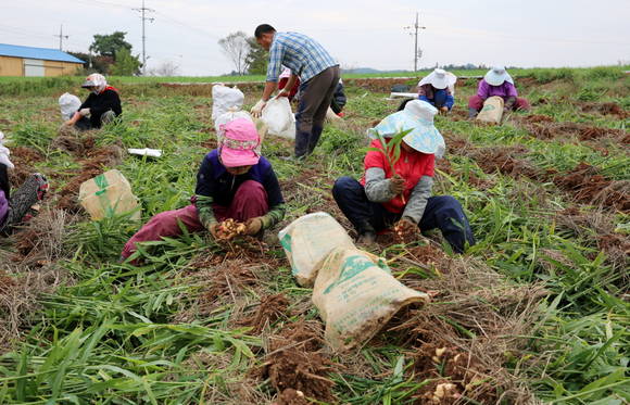 생강 재배와 유통을 병행하는 생각연구회 신대호 회장은 "올해는 기온이 높고 가뭄이 지속되는 악조건 속에서도 포장관수와 병해충 방제에 주력한 결과 예년에 비해 생산량이 늘어날 것"이라고 말했다.