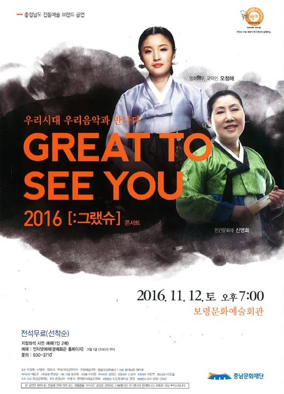 [프라임경제] 충남 보령시는 내달 12일 오후 7시 보령문화예술회관 대공연장에서 충남문화재단의 대표 브랜드 공연 '그랬슈(Great to see you)' 콘서트를 개최한다.