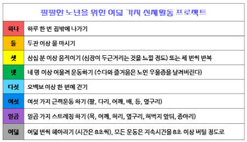 이어 "단 시니어 세대는 질병을 앓고 있거나 약물을 투여하는 경우가 많기 때문에 반드시 운동 전 자신의 몸 상태를 체크하고 결과에 맞는 운동을 실시해야 한다"고 조언했다.