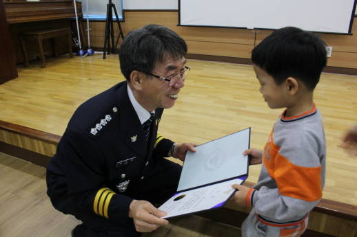 다섯 살 어린이의 올바른 행동을 전해들은 류상열 달성경찰서장은 직접 찾아 포돌이, 포순이와 함께 14일 오전 11시 정 어린이가 다니는 유치원을 방문해 강당에서 '착한어린이상'을 수여하고 함께 기념사진을 찍는 시간을 가지며 칭찬했다.