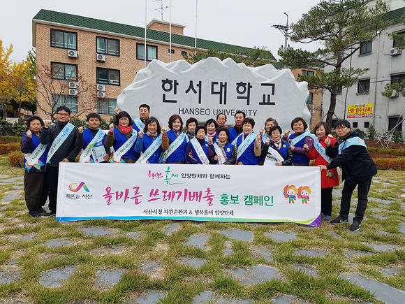 이날 시는 한서대 학생들과 함께 △종량제봉투 사용 △음식물쓰레기 전용수거용기 사용 △대형폐기물 스티커 부착배출을 중점적으로 홍보했다.