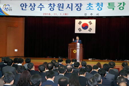 한편 이번 안상수 시장의 '진주시청 특강'은 지난 9월1일 이창희 진주시장이 창원시청을 방문해 특강을 펼친데 대한 답방형식으로 마련됐다.