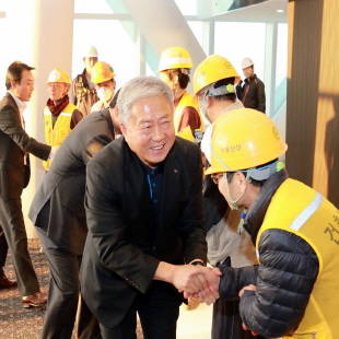 롯데월드타워 1층 공사 현장 곳곳과 내년 상반기 우선 오픈할 예정인 전망대 118층, 120층의 현장 상황과, 안전 상황 등을 살펴봤으며, 내부 공사에 마지막까지 심혈을 기울이는 건설 근로자들을 격려했다.