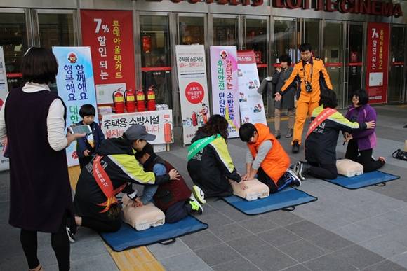 이날 유치원생과 초·중·고등학생과 성인을 대상으로 심폐소생술 체험 및 주택용 소방시설 의무 설치 등에 대해 홍보를 실시했다.