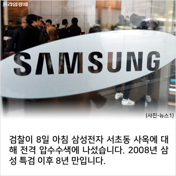 [프라임경제] 검찰이 8일 아침 삼성전자 서초동 사옥에 대해 전격 압수수색에 나섰습니다. 2008년 삼성 특검 이후 8년 만입니다.