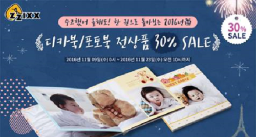 [프라임경제] 찍스(대표 송정진)는 한 해의 추억을 한 권의 포토앨범으로 만들어 볼 수 있도록 '디카북·포토북 전상품 30% 할인 이벤트'를 실시한다고 9일 밝혔다.