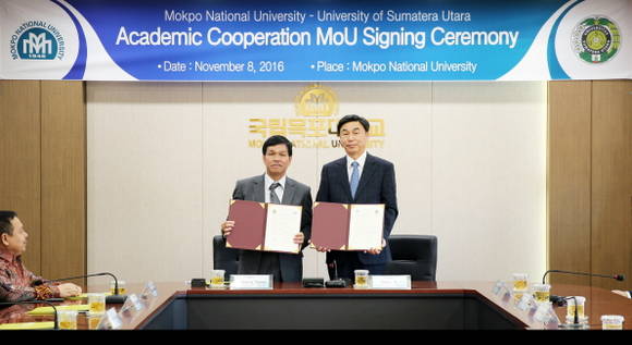 이번 협약 체결식에서는 목포대 최일 총장과 수마트라 우타라 대학 Runtung Sitepu Bin Nasip 총장이 협정서에 서명했다.