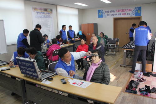 이 사업에는 2015년에 이어 올해도 다비치안경 전문 안경사 10명이 재능기부로 참여해 이용자 한명 한명에게 성심성의껏 검안, 안경 처방, 안경 조정 등 값진 나눔을 실천해줬다.