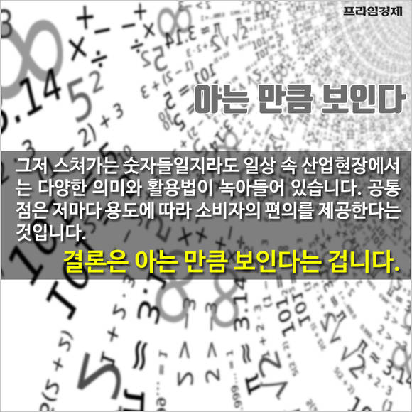 그저 스쳐가는 숫자들일지라도 일상 속 산업현장에서는 다양한 의미와 활용법이 녹아들어 있습니다. 공통점은 저마다 용도에 따라 소비자의 편의를 제공한다는 것입니다. 아는 만큼 보이니까요.