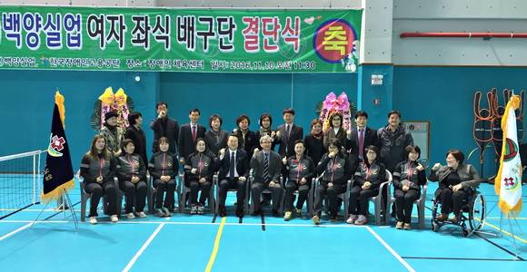 백양실업은 지난 10일 광주광역시장애인체육센터에서 전갑수 회장, 김철원 한국장애인고용공단 광주지사장, 이명자 광주시장애인체육회 상임부회장, 장영희 광주시장애인배구협회장, 정순애 광주서구의원 등 100여명이 참석한 가운데 '백양실업 여자 좌식 배구단 결단식'을 가졌다.