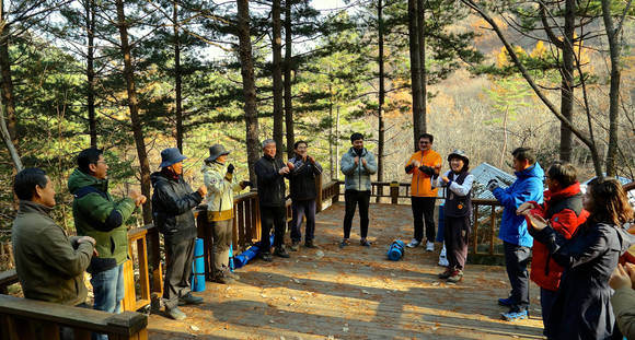 특히, 외신 기자들은 숲 치유 프로그램의 하이라이트인 음이온 소리 명상에 뜨거운 관심을 보였다. 시원하게 흐르는 물소리, 지저귀는 산새 소리, 가을바람 소리에 집중하며 몸의 긴장을 풀었다.