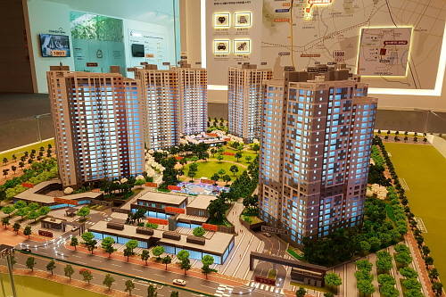 미리 찾은 견본주택에서 가장 눈길을 끈 것은 견본주택 한 가운데 자리 잡은 '힐스테이트 호매실' 모형도다. 단지 중심 널찍하게 중앙정원을 배치해 동 간 채광과 통풍, 일조권을 보장했고, 동 간 거리도 가깝지 않아 사생활 역시 보장될 것으로 보인다.