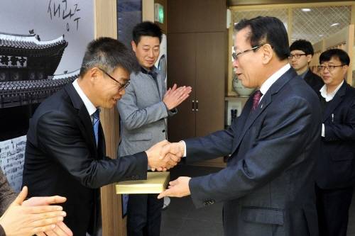 [프라임경제] 경기 광주시(시장 조억동)는 16일 시장집무실에서 올해 대학수학능력 시험을 치루는 자녀를 둔 공직자 67명에게 '수능 대박 기원 찹쌀떡'을 전달했다.