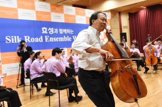 [프라임경제] 효성(004800)은 세계적인 첼리스트 요요마가 이끄는 '요요마와 실크로드 앙상블'을 초청해 장애아동 오케스트라 단원들의 일일멘토가 돼 직접 연주 지도를 하는 '요요마 티칭 클래스'를 개최했다고 18일 밝혔다.