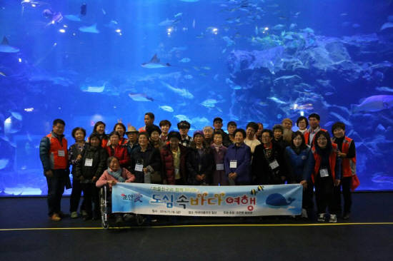 이번 '도심 속 바다여행'은 평소 어르신들이 가보기 어려운 아쿠아리움에 함께 동행해 다양한 물고기와 동물들을 구경하고, 싱크로나이즈 공연을 관람하는 등 다채로운 시간을 보냈다.