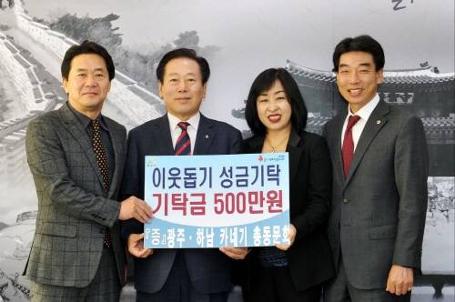 이에 조억동 시장은 "지역사회 나눔 문화 확산에 솔선해 실천하는 광주·하남 카네기 총동문회 회원들에게 감사드리며, 기탁받은 성금은 어려운 이웃에게 소중히 전달하겠다"고 감사의 뜻을 전했다.