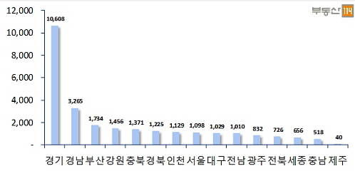 이 외 지방 도시별 총 입주물량은 △강원 1456가구 △충북 1371가구 △경북 1225가구 △대구 1029가구 △전남 1010가구 △광주 832가구 △전북 726가구 △세종 656가구 △충남 518가구 △제주 40가구 순이다.
