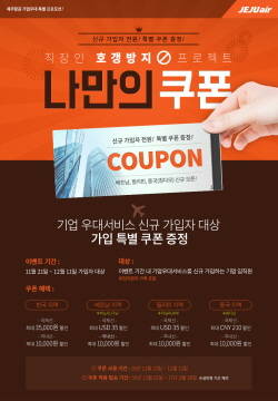 제주항공은 기업우대서비스 가입확대를 위해 다음 달 11일까지 신규 가입회원 프로모션을 진행한다.
