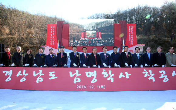 착공식에는 홍준표 경남도지사를 비롯한 최구식 전 서부부지사, 재경도민회 회원과 남명 조식 선생의 후손, 서민자녀 장학생, 지역주민 등이 참석했다. 축하공연, 경과보고, 기념사 순으로 진행됐다.