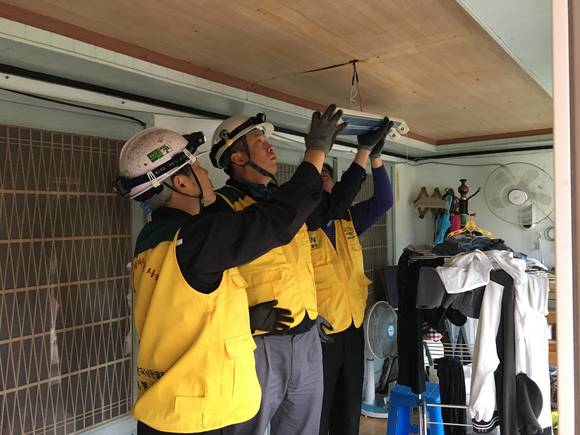 이날 전기전문가들로 구성된 나눔봉사단은 지자체로부터 추천받은 10개 가정을 방문해 누전차단기 및 노후된 전기소모품을 교체했다. 또 어르신들의 눈높이에 맞춘 겨울철 안전사고 예방교육도 실시했다.