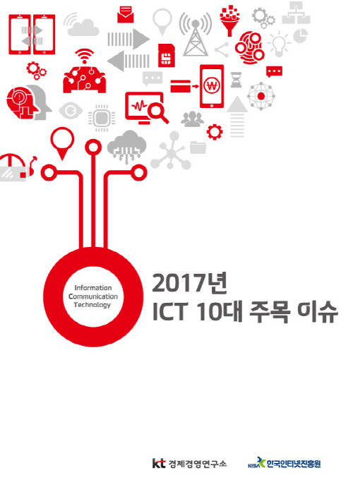 [프라임경제] KT(030200·회장 황창규)는 KT경제경영연구소와 한국인터넷진흥원(원장 백기승·KISA) 공동으로 국내외 정보통신기술(ICT) 시장의 주요 이슈와 트렌드를 전망하는 '2017년 ICT 10대 주목 이슈' 특집보고서를 발간했다고 6일 밝혔다.